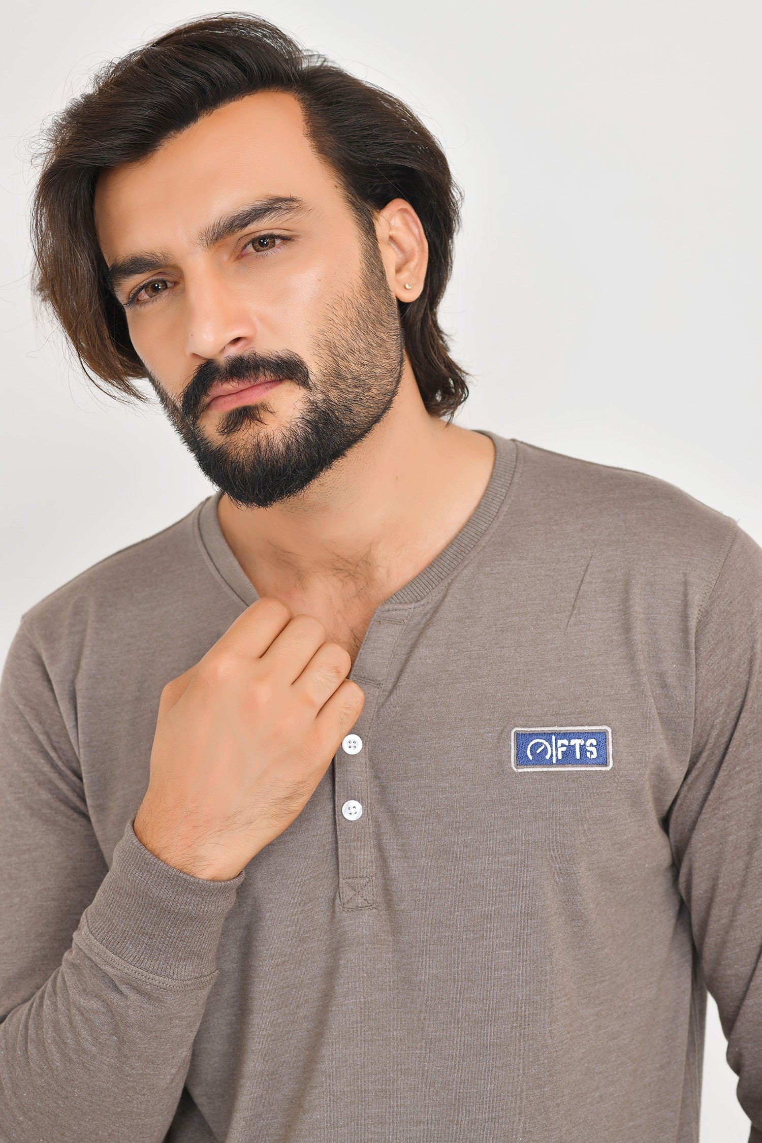 Henley Full Sleeves T-Shirts | Dark Grey Full Sleeves Henley Shirt