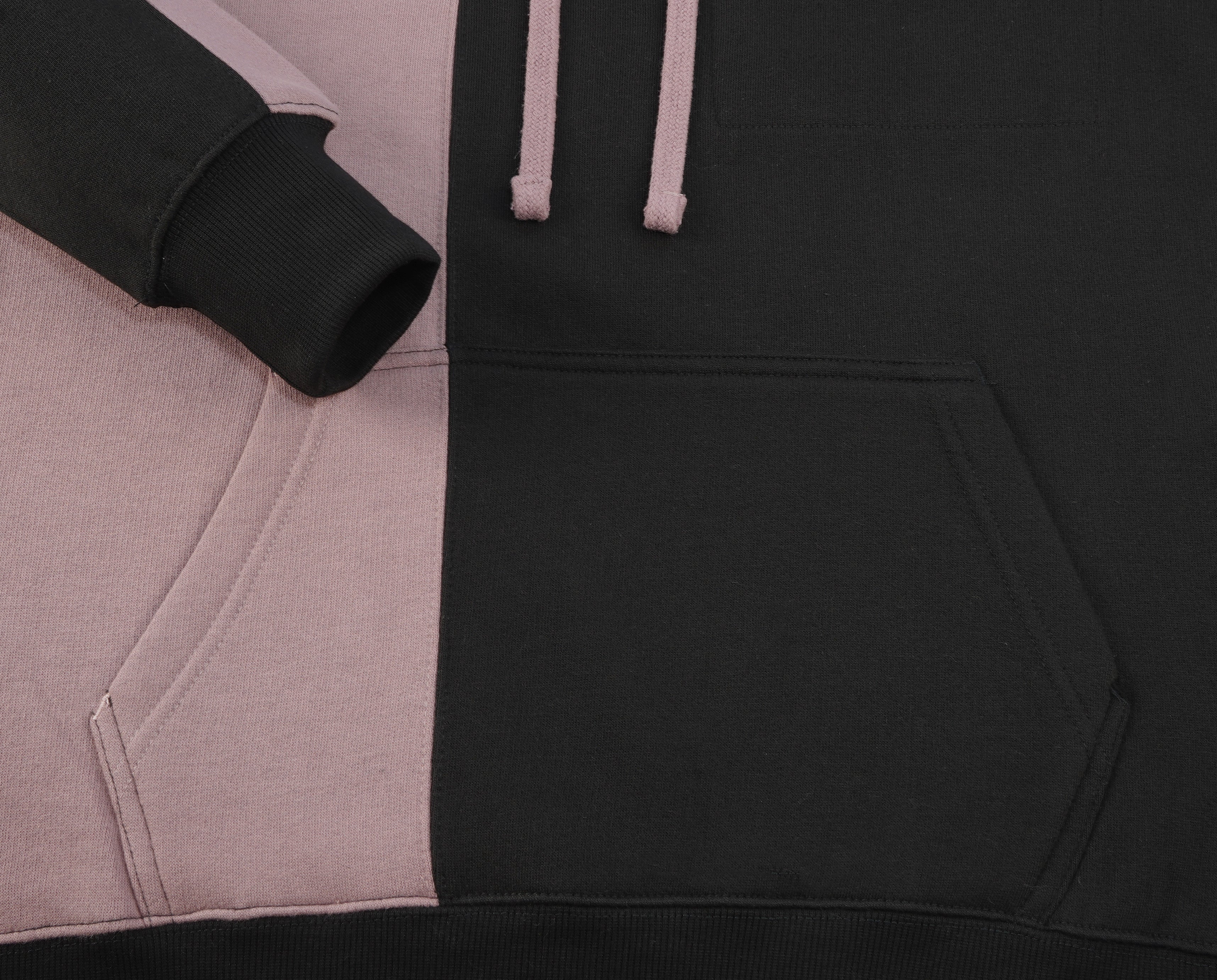 Black Mouve Panel Pullover Hoodie for men and women - Contrast Hooded Pullover