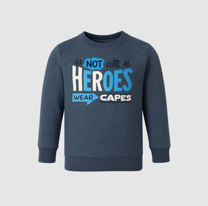 Celebrate everyday bravery with this cozy Heroes Design Sweatshirt for kids—featuring the bold message "Not All Heroes Wear Capes." Crafted from heavy GSM fleece, it offers superior warmth and comfort during cold days. The Petrol color adds a trendy, unisex touch, while the no-feel print ensures the design stays soft against the skin with no cracking or stiffness.