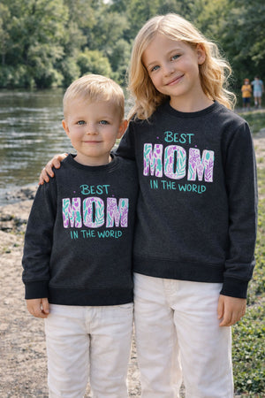 Celebrate love and warmth with this cozy Kids Winter Sweatshirt featuring a heartfelt "Best Mom in the World" design. Crafted from soft fleece and styled in a modern charcoal color, it keeps kids snug while expressing affection in the cutest way. Designed for both boys and girls, this sweatshirt offers all-day comfort, perfect for winter outings, school, or relaxed weekends. The no-feel print ensures the design stays smooth and skin-friendly for little ones.