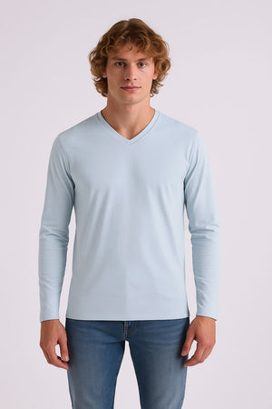 Our exclusive long-sleeved V-neck T-shirt is designed for comfort and style