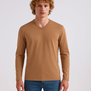 Our exclusive long-sleeved V-neck T-shirt is designed for comfort and style