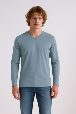 Upgrade your everyday essentials with our V-Neck Full Sleeve Shirt in Slate. Designed for comfort and refined styling, this long-sleeve V-neck t-shirt offers a modern, versatile look suitable for casual wear, layering, or smart off-duty outfits.
