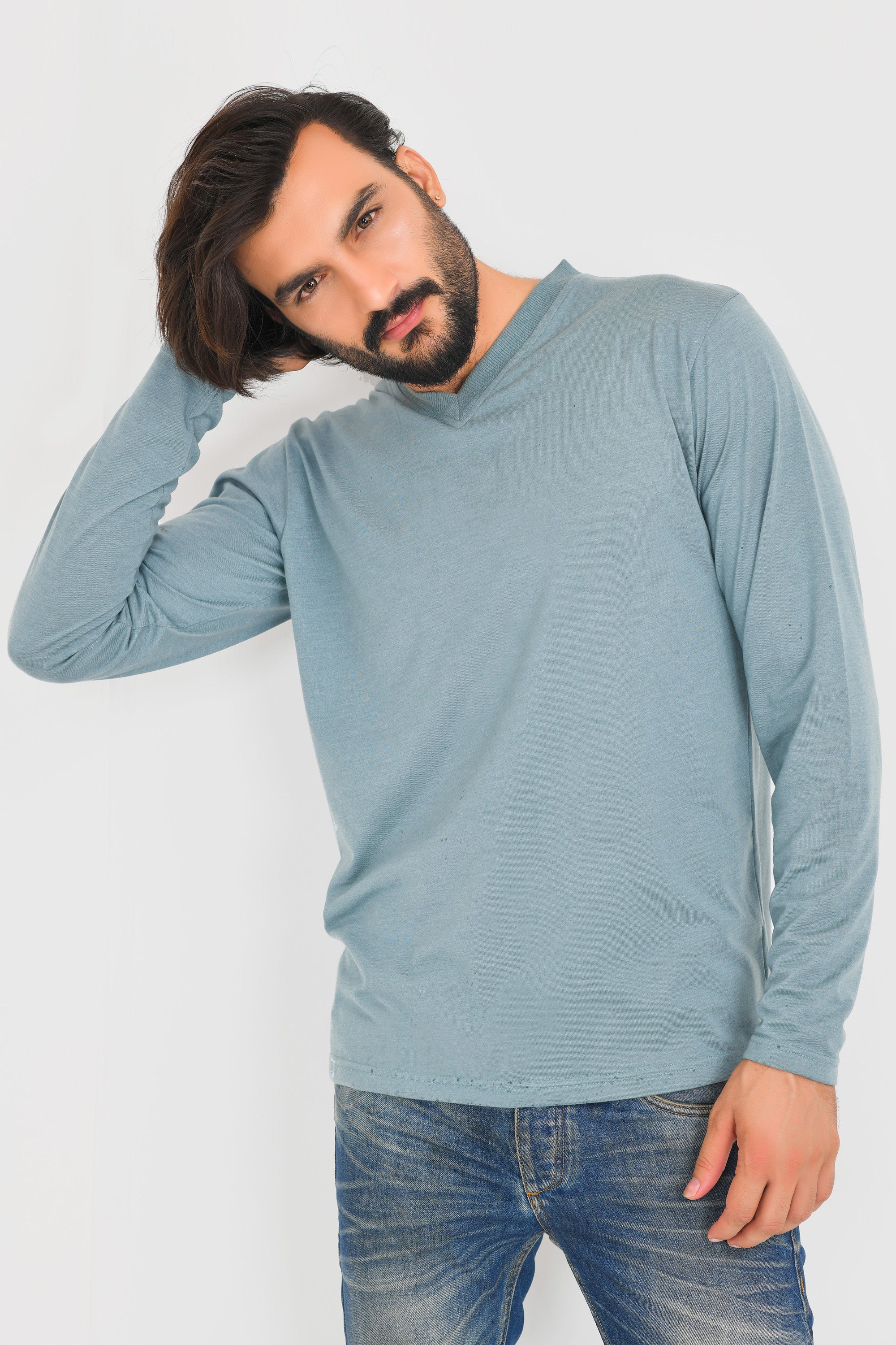 V-Neck Full Sleeve Shirt | Slate V Neck T-Shirts