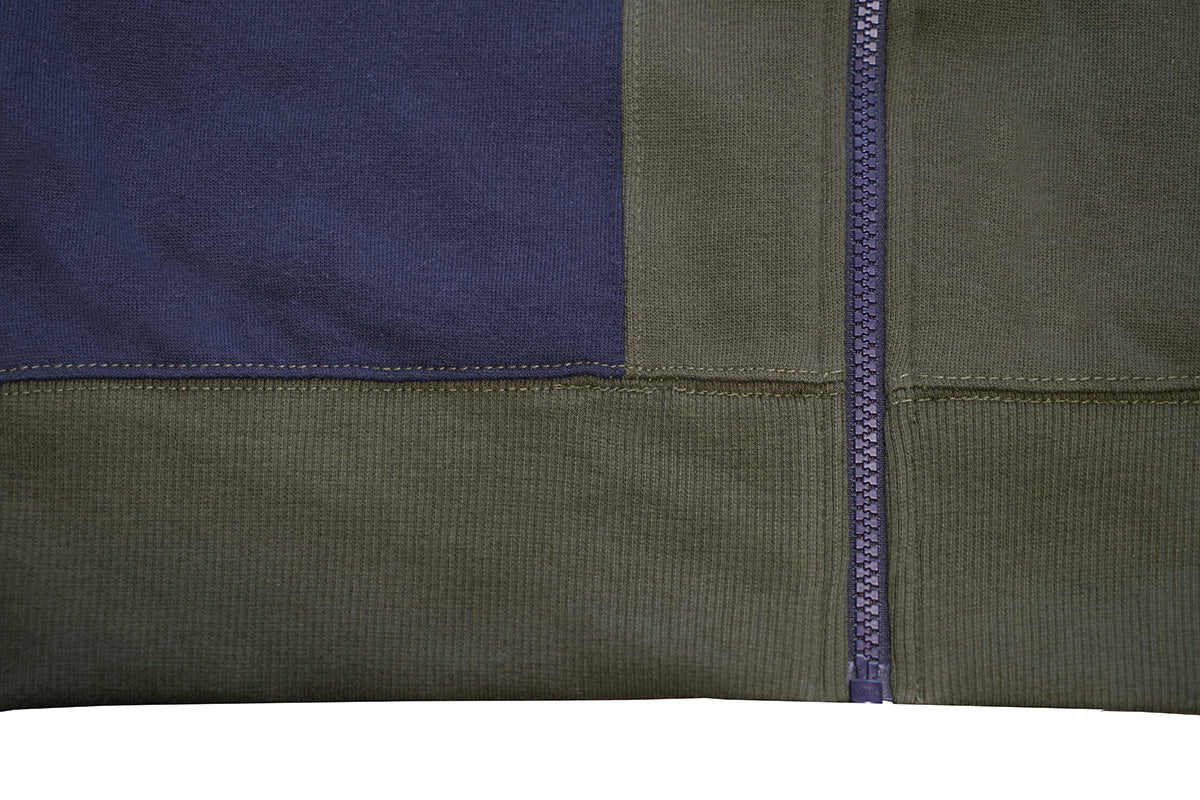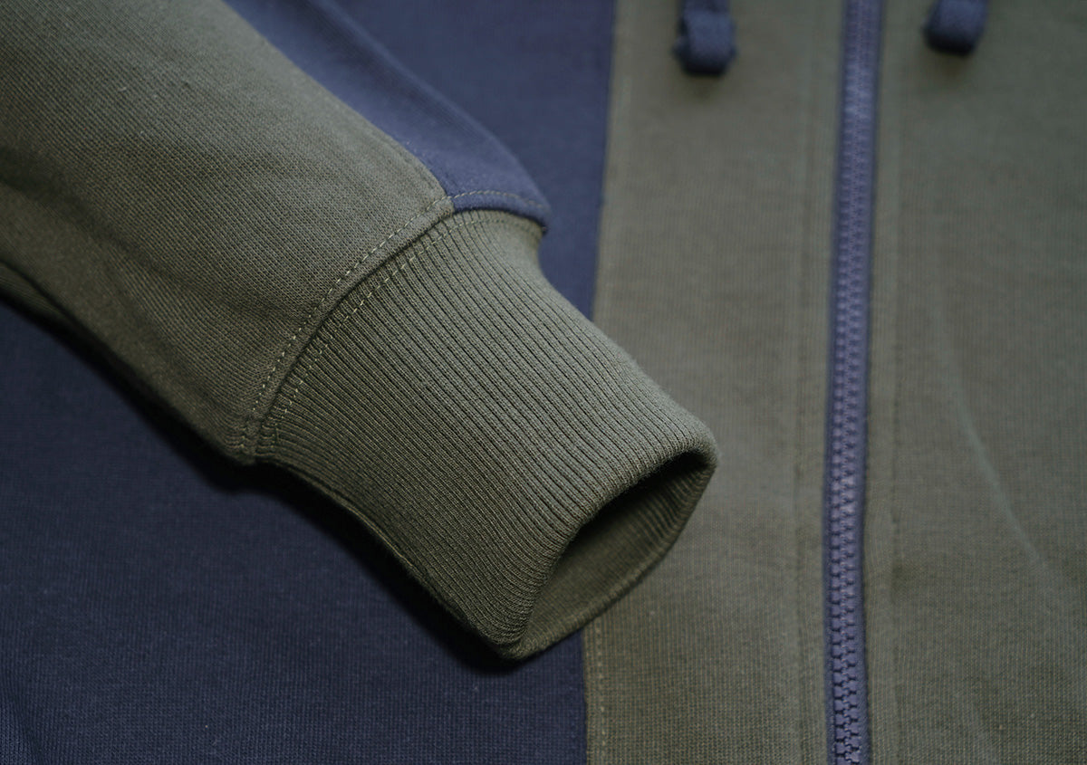 Navy Army Green Panel Zip Hoodie for Men and Women - Hooded Zipper
