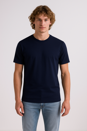 The classic round neck design with a clean ribbed finish offers a timeless and versatile look, while the short sleeves provide ease of movement and relaxed comfort. Lightweight and quick-drying, this t-shirt keeps you feeling fresh whether you’re at the gym, traveling, or enjoying casual outings. Easy to maintain and designed to retain its color and fit after repeated washes, this navy blue t-shirt is a must-have essential for men who appreciate comfort, quality, and effortless style.