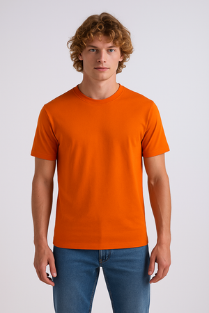 Add a vibrant edge to your casual wardrobe with the Orange Round Neck Cotton T-Shirt for Men, designed for all-day comfort and modern style. Crafted from premium CVC blend cotton fabric (60% cotton, 40% polyester), this t-shirt delivers a soft, breathable feel with enhanced durability and dependable shape retention, making it perfect for everyday wear.